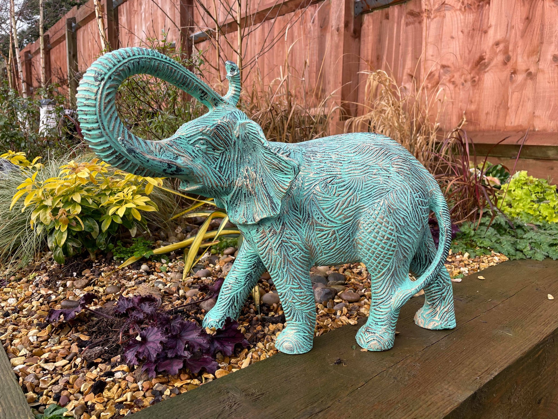Crafted from aliminium the Elephant is very sturdy and a good weight to ensure this Elephant can enjoy the garden all year around.
