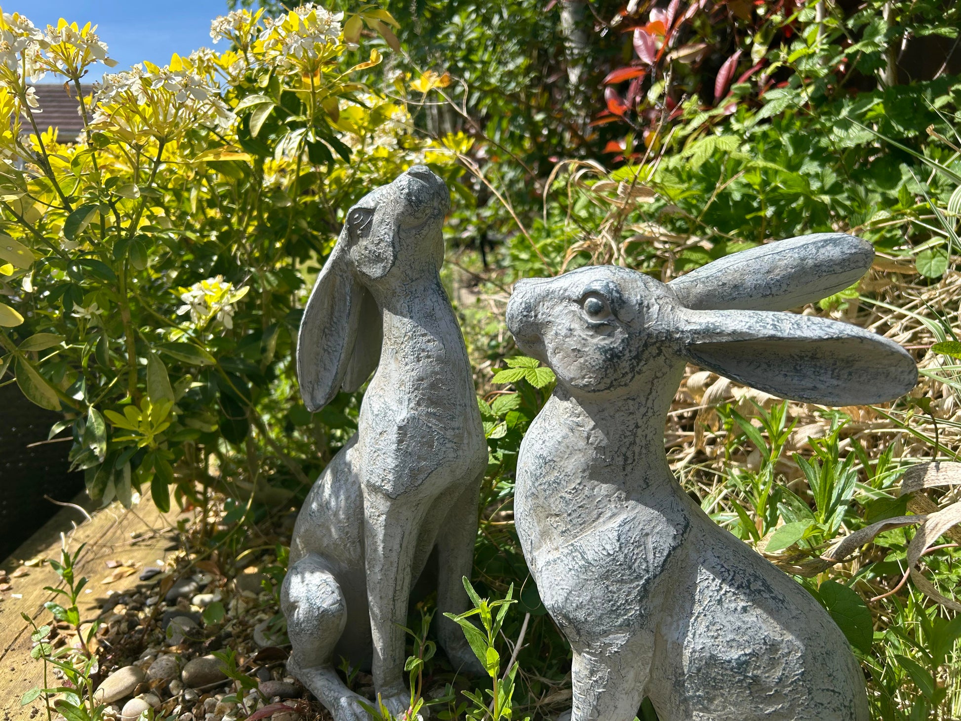 Each set includes two distinct ornaments, standing at 38cm and 36cm respectively, adding dimension and charm to your garden landscape.
