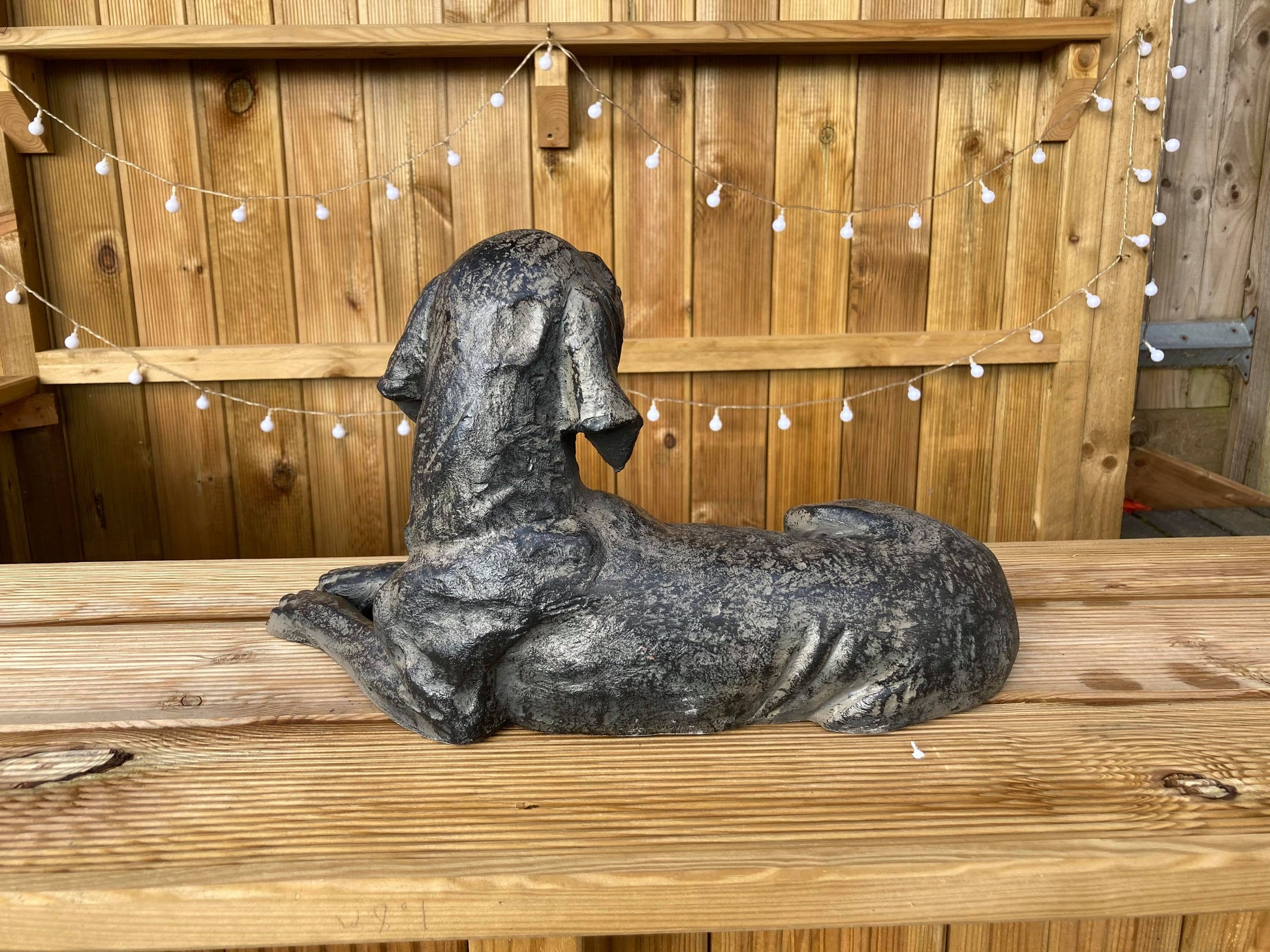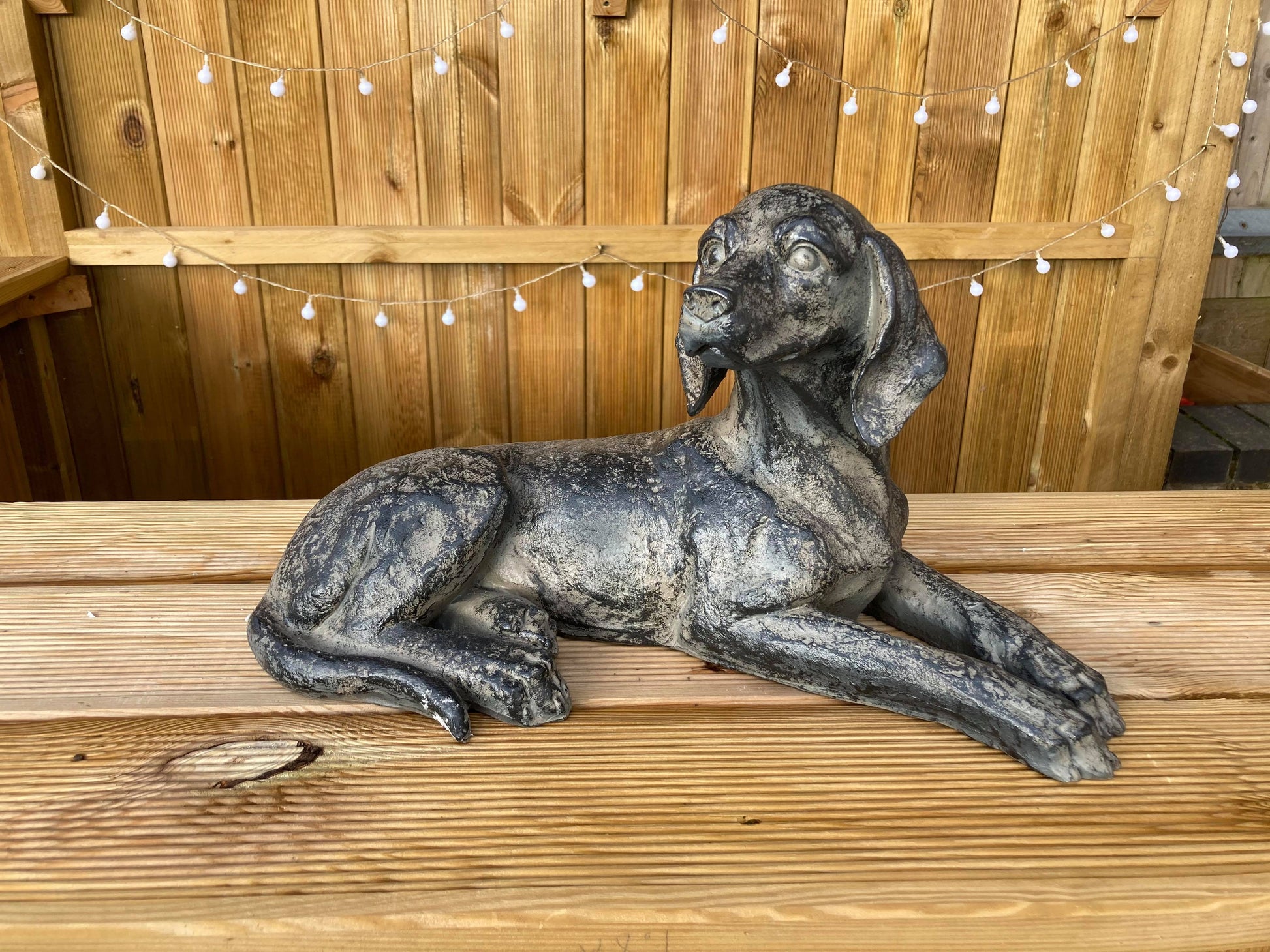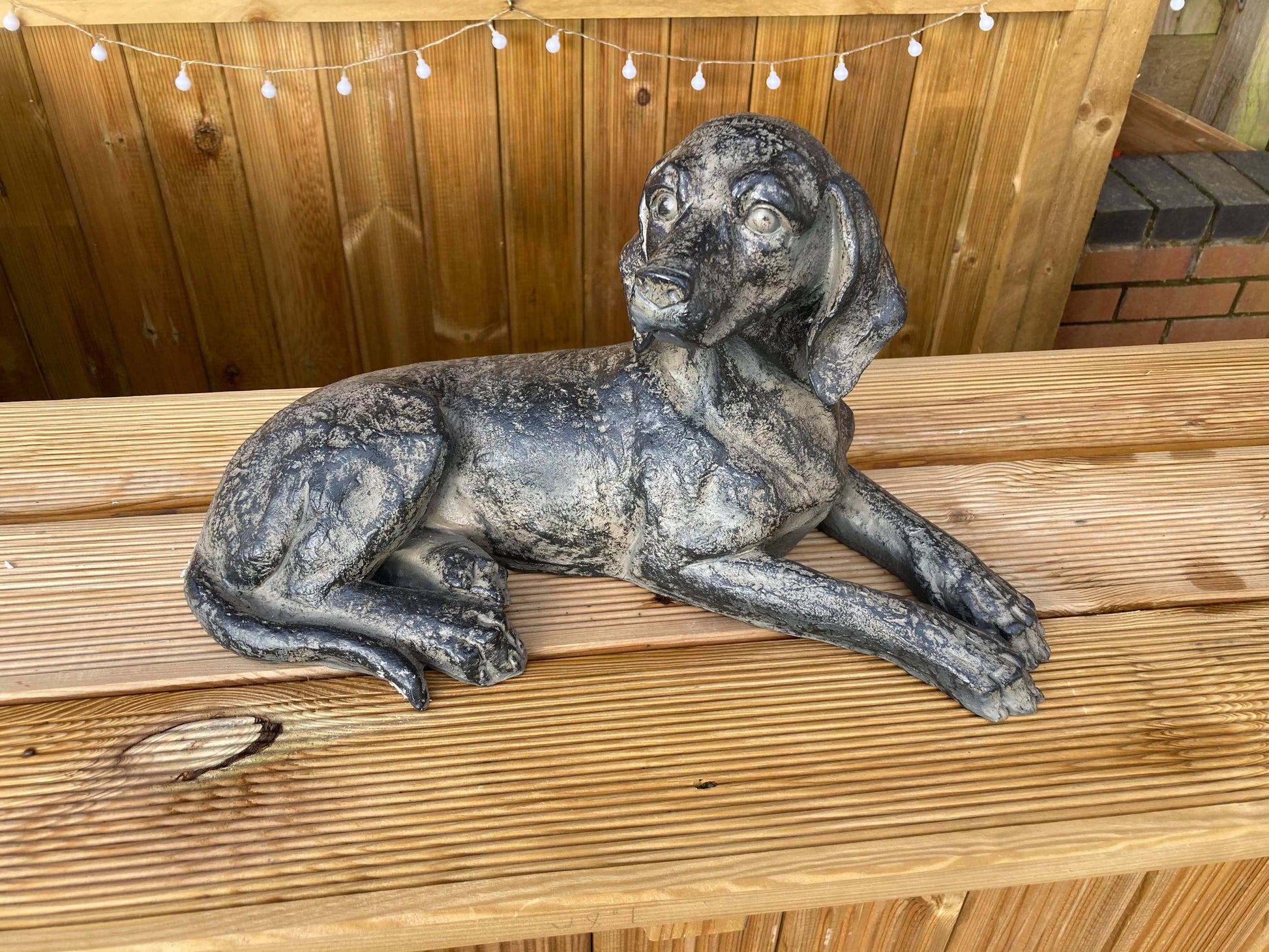 We love this very handsome Short Haired Spaniel, made with a vintage look and dark finish it really stands out as it watches over the Garden.